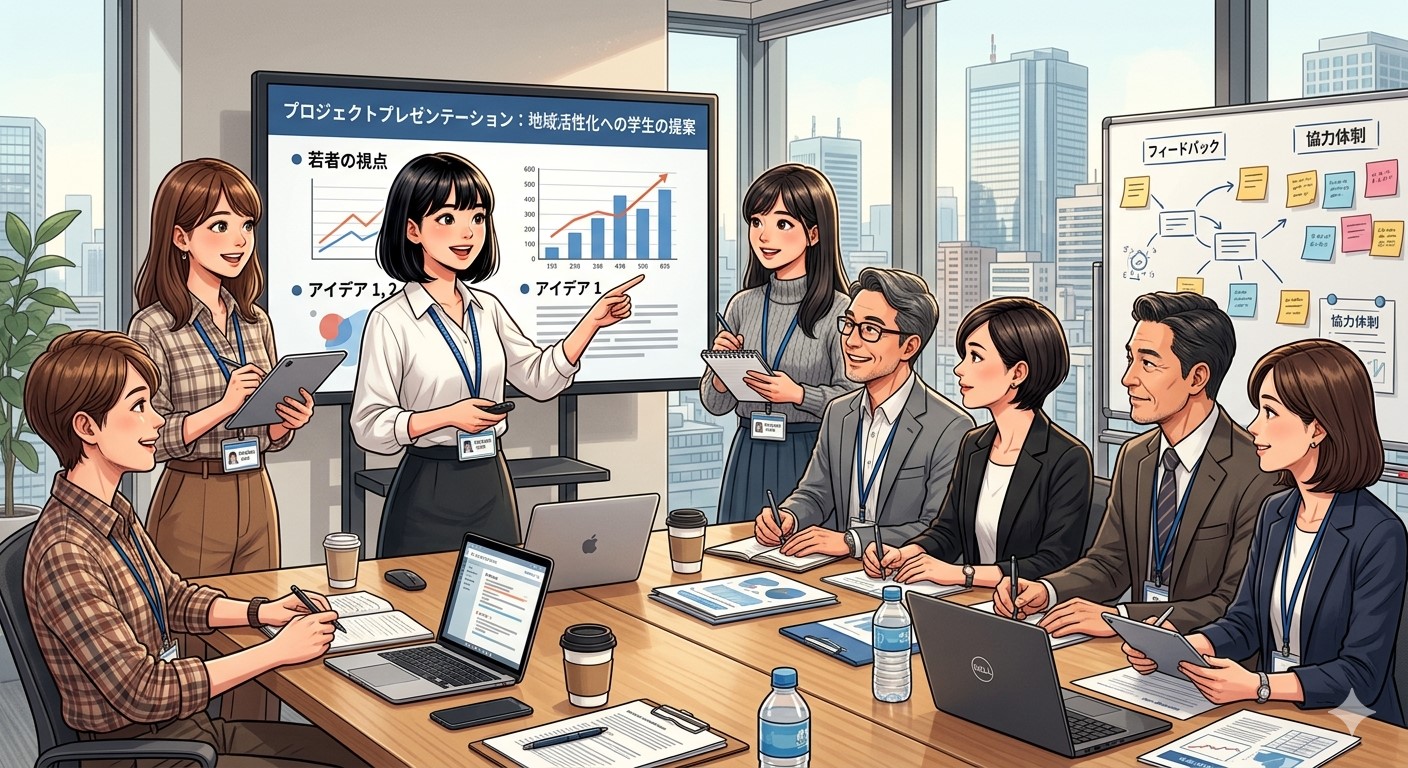 学生のみなさんが実社会の課題に真剣に向き合い、成長していく姿。