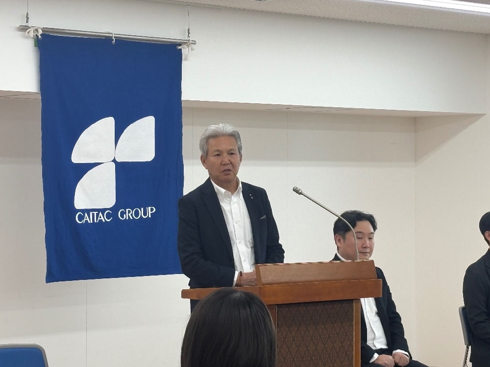式典では、社長から「未来にチャレンジ!CAITAC」という合言葉とともに、変化を恐れず新しい価値を創り出していこうという激励のメッセージが送られました。